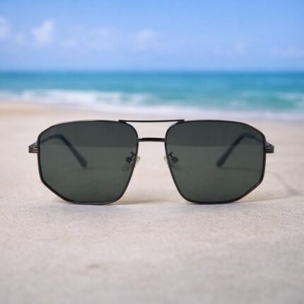 Black Square Metal Sunglasses with Gold Bridge – Roos Eyewear