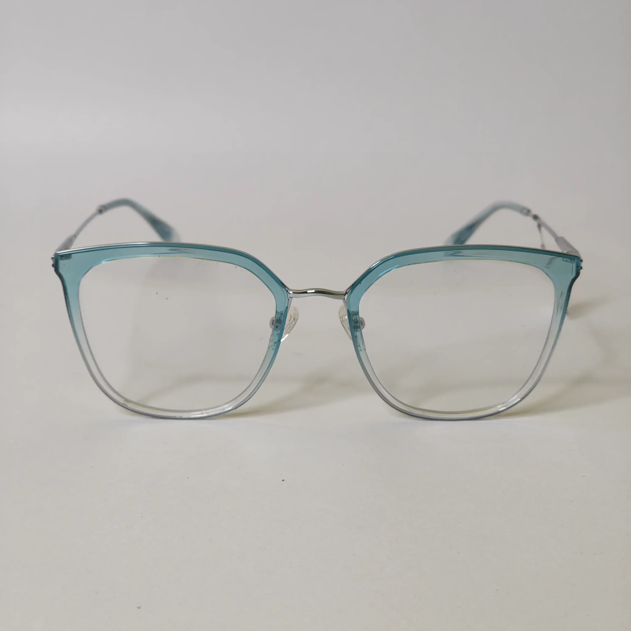 Refresh your everyday eyewear with this transparent blue square eyeglasses frame, designed for those who love clean design with a modern twist. The soft aqua tone is complemented by subtle gold detailing and ultra-slim metal temples, creating a lightweight and stylish frame that stands out without being overpowering.The softly rounded square shape flatters most face types, while the durable metal arms provide long-lasting comfort and stability.