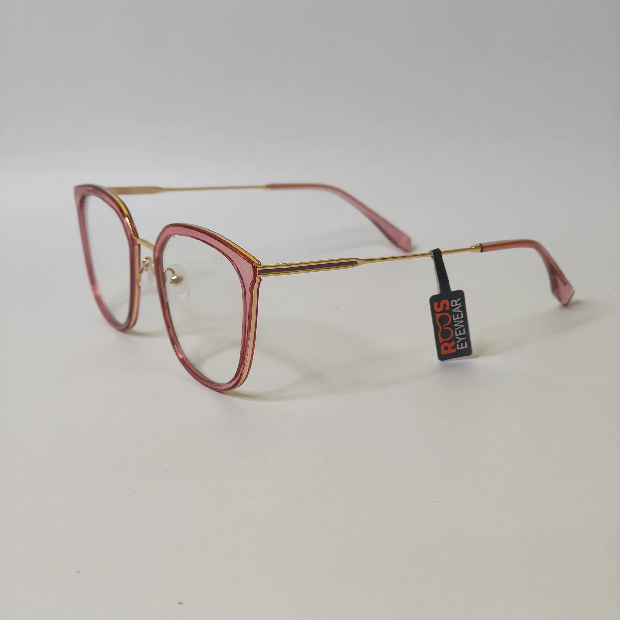 Elevate your everyday style with these Transparent Pink Square Eyeglasses by Roos Eyewear. Featuring a clean square silhouette and a soft blush-pink transparent finish, this frame delivers a perfect balance of elegance and modern simplicity.Crafted with a lightweight frame and paired with a sleek metal bridge, these eyeglasses offer lasting comfort and durability.