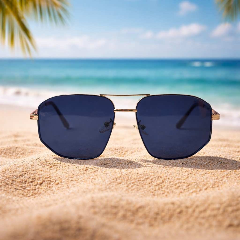 Step into bold sophistication with these Luxury Double Bridge Square Aviator Sunglasses by Roos Eyewear, designed for individuals who appreciate structured styling with a premium finish. Featuring a sleek gold-tone metal frame paired with deep black lenses, this design blends modern geometry with classic aviator influence.The distinctive double bridge detail enhances the masculine, high-end appeal, while the square silhouette adds sharp definition to your facial features.