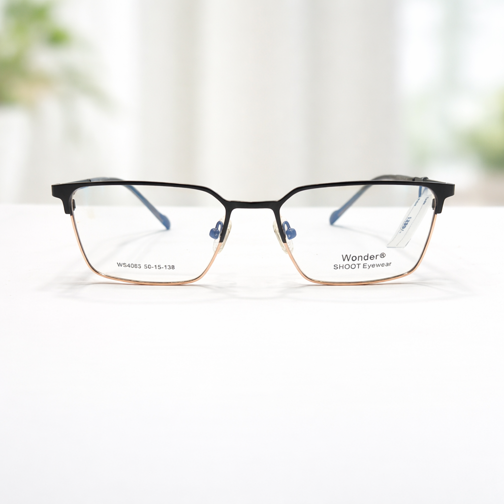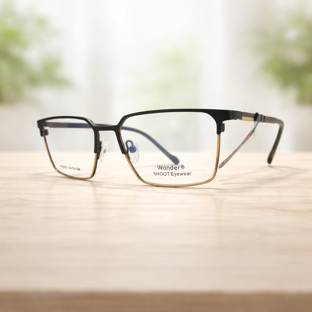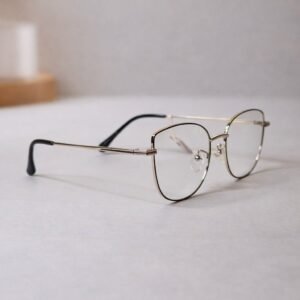 These square eyeglasses feature a clear black golden frame design that delivers a fresh, lightweight look. The transparent front adds subtle character while maintaining a clean appearance, making the frame easy to pair with any outfit. Adjustable nose pads provide a comfortable and secure fit, and the balanced shape makes these eyeglasses ideal for everyday wear at work or on the go.