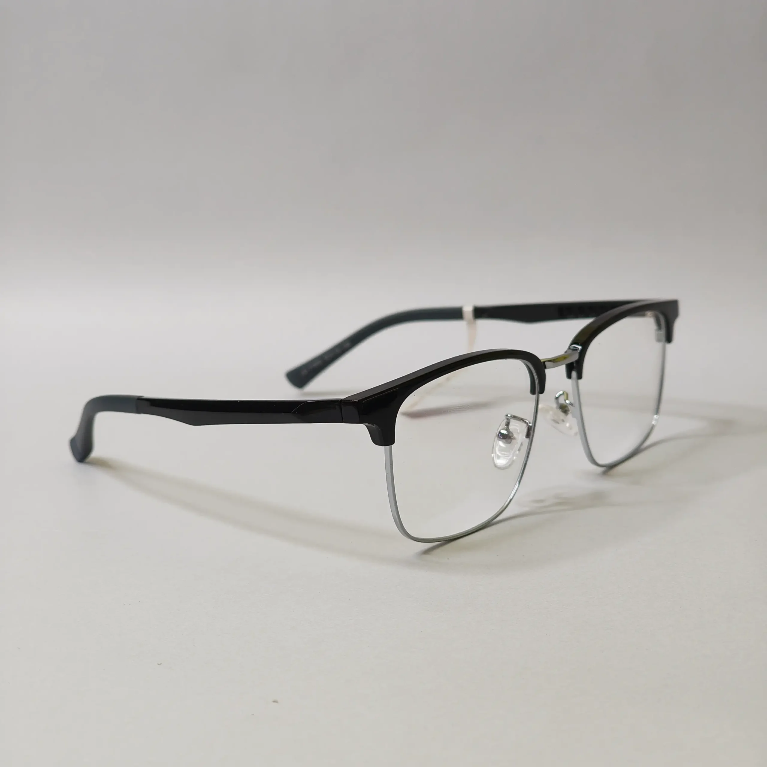 These square half-rim eyeglasses feature a streamlined design that balances structure with a lightweight feel. The defined upper frame adds a sharp look, while the slim lower rim keeps the style clean and easy to wear. Adjustable nose pads provide a comfortable, secure fit, making this frame a practical choice for daily use in both professional and casual settings.