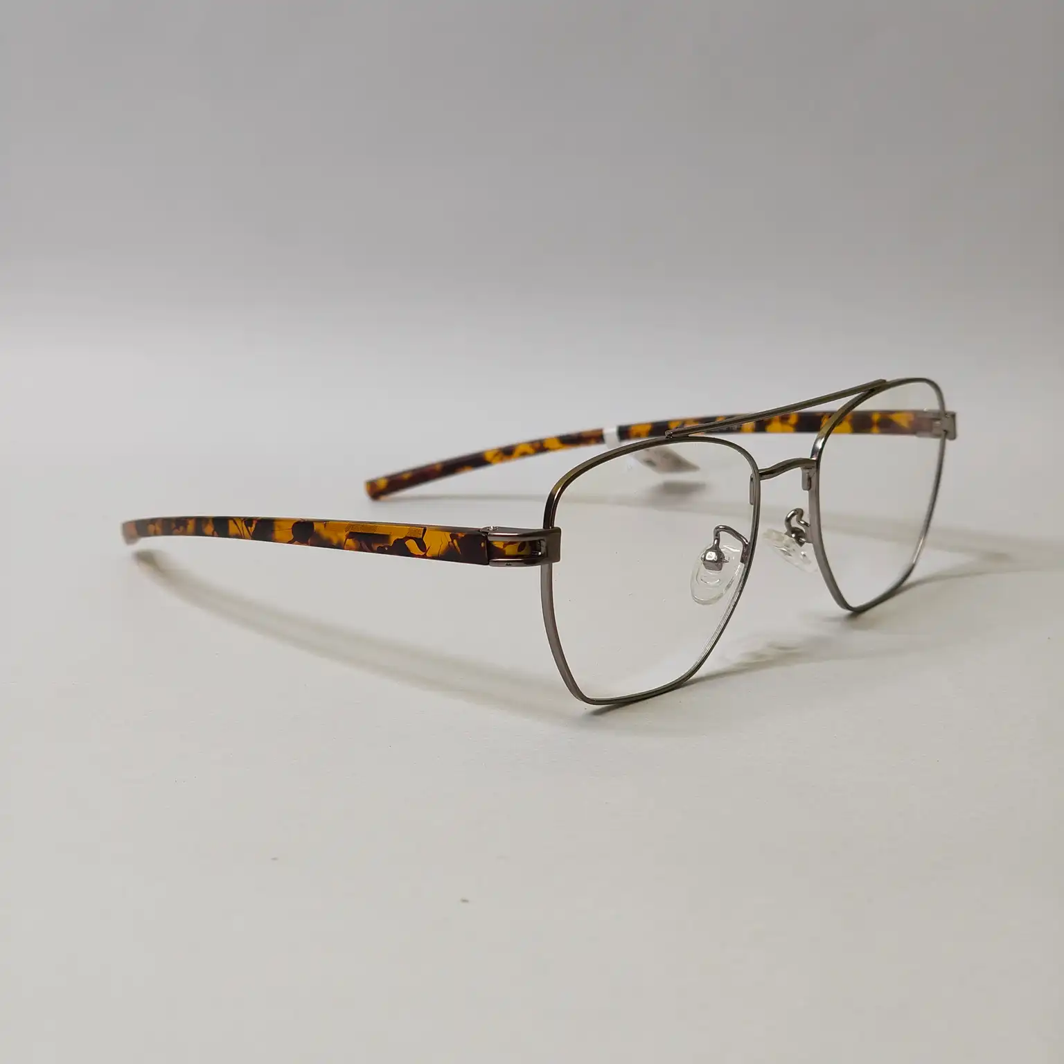 Upgrade your everyday look with this stylish square metal eyeglass frame, designed for those who love a perfect balance of modern elegance and comfort. Crafted with a sleek thin metal rim and paired with premium tortoiseshell-pattern temples, this frame delivers a classy yet contemporary appeal.The lightweight metal construction ensures all‑day comfort, while the adjustable nose pads provide a secure and customized fit.